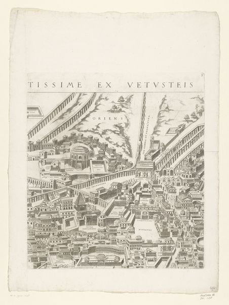 This is the tenth section of an anonymous print showing a notional map of ancient Rome. The image offers an imagined bird's-eye view of the city. The river Tiber runs through the middle, bisecting the space. The high walls and fortifications tell us about the perceived need to protect Rome. What we are looking at isn't just a map; it is a symbolic representation of Roman power. Prints like these circulated widely and played an important role in shaping perceptions of the classical world. They served a didactic purpose and fueled the cultural phenomenon of the Grand Tour, in which elites from across Europe visited the sites of antiquity as a rite of passage. To better understand images such as these, scholars consult a variety of sources including historical maps, civic records, and archaeological surveys. This interdisciplinary approach helps us to understand the place of art within the broader culture that produced it.