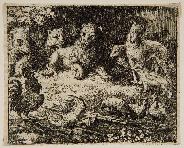 Allart van Everdingen etched this plate to illustrate Hendrick van Alcmar's Renard The Fox. The prominence of anthropomorphic animals reveals a rich tapestry of symbolic expression. The bear, wolf, and fox, central figures in this revelry, are not merely creatures of the forest; they embody human traits. Since ancient times, the fox has been a symbol of cunning, appearing even in Aesop's fables. The wolf, dancing with fervor, carries the weight of its dualistic nature: loyalty, but also the wild, untamed aspect of nature. The bear embodies raw strength, a figure looming large in folklore and often representing the untamed self. Notice the dancing animals - they represent primordial, chaotic states. This representation transcends mere fable, resonating with the Dionysian spirit of ecstatic abandon that echoes in art through the ages. It embodies our primal connection to the animal kingdom, a mirror reflecting our own complex natures.
