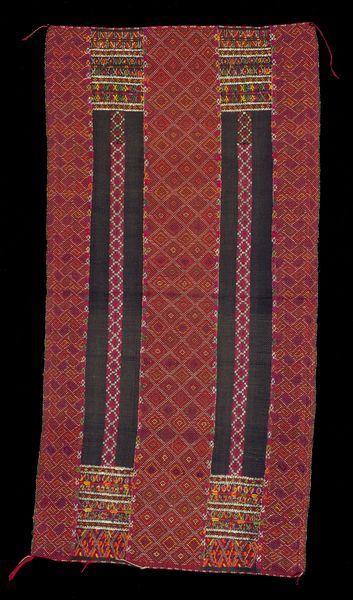 This *Pulkari* at the Minneapolis Institute of Art captivates with its monumental scale and intense visual rhythm. The anonymous maker has masterfully embroidered silk threads onto coarse cotton, creating a tactile and visually striking surface. The fabric is dominated by vertical lines, formed by rows of repeating, stylized motifs, creating an almost hypnotic effect. The piece employs a sophisticated system of signs. Note how the embroidered patterns function as visual units, carefully arranged to form a larger cohesive design. The overall composition and arrangement challenges fixed meanings. There is a tension between regularity and irregularity, as subtle variations in color and pattern disrupt the rigid structure, suggesting a deeper engagement with the interplay of order and chaos. Notice the texture, achieved through dense embroidery, inviting us to consider the interplay between the material and the visual. The *Pulkari* stands as a testament to the ongoing dialogue between tradition and innovation. It prompts us to rethink established categories and embrace the dynamic potential of art to destabilize fixed meanings.