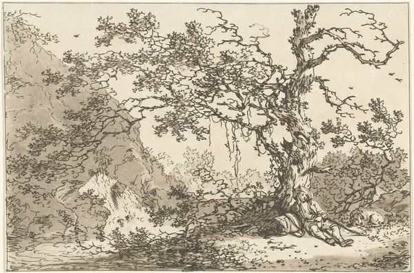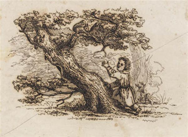 Editor: Here we have Martinus Rørbye’s "Illustration til "Halvhundrede Fabler for Børn" af Hey," created in 1834. It's an engraving, showcasing incredibly detailed line work. I’m struck by its whimsical nature, but also by something a little unsettling. How do you interpret this work, especially given its time? Curator: I'm drawn to how Rørbye positions this seemingly innocent illustration within a larger socio-political context. Remember, 1834 was a period of immense social upheaval, where ideas about childhood and innocence were rapidly evolving, often interwoven with nationalistic and patriarchal narratives. Does this idyllic landscape mask or reflect deeper anxieties about identity, particularly gender identity given the fable context, and Denmark's place in a changing world? The child's disembodied head might symbolize innocence but simultaneously a loss of connection. Editor: That's fascinating, I hadn't considered the broader societal influences. The figure feels a little like a surveillance state? Curator: Precisely. The positioning is crucial; the engraving technique also plays a role, offering a sense of both precision and emotional detachment. Does it invoke Romanticism, but then subtly undermines its grandiosity? What happens when we view the image through the lens of feminist theory, given the absent adult figures and emphasis on a disembodied, vulnerable, albeit central, child-like gaze? Editor: That shifts my perception entirely. The idyllic scene now feels deliberately constructed, perhaps to obscure something. It highlights the importance of viewing art not as isolated objects but within intersecting webs of power and culture. Curator: Exactly. And what can we do with our reading now? It certainly has impacted my perception as well! Editor: Me too. It makes me think about how illustrations, even those for children, are never truly neutral.