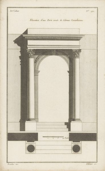 Curator: Let's discuss "Galerij met rondboog" by Pierre Gabriel Berthault, a drawing and engraving print dating from between 1752 and 1794 here at the Rijksmuseum. Editor: The first thing that strikes me is its air of calculated precision. The whole thing feels like a stage set, meticulously planned but somehow devoid of life, like an abandoned architectural rendering waiting to be filled with narrative. Curator: Indeed. This work exemplifies Neoclassicism's embrace of order and reason, reflecting Enlightenment ideals. Look at the deliberate use of classical motifs—the columns, arches, and the carefully placed statues. This isn't merely a depiction of a gallery, it's a statement about power, intellectualism, and control. In the social and political climate of pre-revolutionary Europe, such structures were designed to awe. Editor: You're right about the symbolic weight of those classical forms. The arch, for instance, is repeated, creating an echo of Roman grandeur. The statues positioned within suggest figures of authority, virtue or ideal beauty that all reinforce existing notions about hierarchies. Curator: Absolutely. And note how the very style reinforces this message. The sharp, clean lines and lack of overt emotion in the drawing communicate a sense of unwavering certainty. However, consider also the function of such prints: how did these plans disseminate new forms and thus social possibilities beyond elite circles? Editor: That's a critical point. Beyond the surface, this print may carry subconscious meanings, as it speaks to power but could also be perceived as an unattainable dream for some people. The classical forms signify both enlightenment and possible social restriction. Curator: Precisely. And those classical visual elements resonate powerfully across eras, reminding us of humanity's perpetual striving towards ideal forms of governance. Editor: It makes you wonder about how we understand progress now. Seeing how the old symbols keep on living and shaping contemporary society.