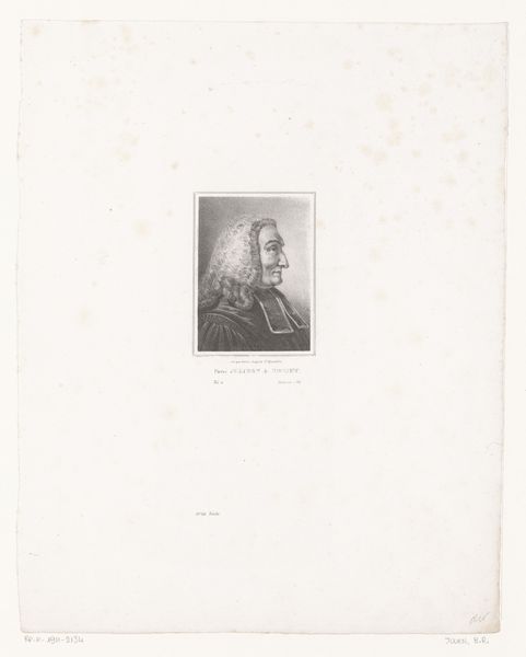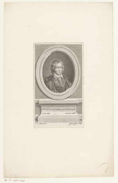 Curator: Before us, we have an engraving dating from around 1830, titled "Portret van Charles Frey de Neuville," made by Bernard Romain Julien, held in the Rijksmuseum. Editor: Its subdued tones immediately create a sense of somber introspection. The subject gazes towards the left with an intriguing level of detail, given the medium. It’s a rather severe portrait. Curator: Note the technical mastery Julien employs. He harnesses the precision of engraving to render texture – observe the nuanced play of light on de Neuville's cheek and brow. It creates a subtle yet potent illusion of volume. The controlled strokes work together, evoking a stoic disposition befitting the era. Editor: And consider that this wasn't merely artistic flourish, but physically demanding labor. The act of engraving on metal plate, line by careful line, is crucial. It brings the human effort and toil into stark relief against today's effortless image production. We are faced with understanding the materials, the pressure, the physical commitment inscribed on this work. Curator: Absolutely. From a structural standpoint, we cannot ignore how light operates to both reveal and conceal. Light sculpts his profile but leaves parts obscured, thus enhancing his enigmatic persona. It beckons questions about what remains unsaid and unseen. Editor: But what also fascinates me is who would acquire such a portrait, given the demanding process of creating one. There's value attached, not merely to the depiction, but the social ritual of its production, patronage, and purpose during its creation. We need to also understand the social status conveyed by possessing such crafted luxury. Curator: A superb point. This image acts as a tangible intersection of art, technique, and even psychological expression within a rigid structural frame. Editor: Examining the methods gives access into this historical period's social values – which this print serves to solidify as much as de Neuville's identity. Curator: Indeed, these close examinations offer us glimpses far beyond just visual aesthetics, which in itself opens our eyes to this complex romantic portraiture. Editor: I couldn't agree more; through materials and making, we touch both labor and luxury—offering today's viewer a textured, tangible, visceral history.