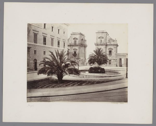 Curator: This work is a photographic print from the archive of Philip Zilcken, created sometime between 1867 and 1930. Editor: The mood it evokes is instantly serene, with an underlying feeling of antiquated grandeur. It whispers stories of lavish parties, secret liaisons in shadowy corners of manicured gardens, like an untold Chekov play just waiting to happen. Curator: The title indicates this is “Le Trianon,” located in Nice-Cimiez, in the south of France. The production process would be quite labor-intensive – the albumen print suggests meticulous preparation, from coating the paper with egg whites to the long exposure times required to capture the image. Think of the artisanal darkroom work, now replaced by a click. Editor: Ah, I see that Neoclassical façade rendered in warm sepia tones. This photographic lens gives it an enduring elegance; those repeated window panes and rigid balustrades speak of absolute power—a relic in a changing world. Curator: Indeed. What’s interesting is thinking about photography’s place in documenting architecture and its role as both objective record and idealized representation. Zilcken, as a prominent artist and critic himself, certainly understood these tensions. Editor: Do you think he yearned to immortalize buildings like this on film because he knew modernity would disrupt these bastions of civilization? Or maybe to make beauty accessible, in the early age of reproduction, democratizing taste for the middle class? Curator: I think you touch on a crucial element: The very consumption of architecture through these reproducible postcards hints at broader socio-economic shifts. And it brings up questions about value. Is it about what you show, how you make, or who buys that decides what’s truly precious. Editor: Yes, something quite profound about capturing an aesthetic now relegated to the past; it feels oddly melancholy but not mournful... reflective, almost. This fleeting quality makes me consider how images help shape both remembrance and longing. Curator: Precisely! A tangible reminder about our transient relationship with art. Thank you for providing those valuable insights! Editor: Likewise! Analyzing art feels just as precious to me. It can make visible both what stands out and what almost vanishes.