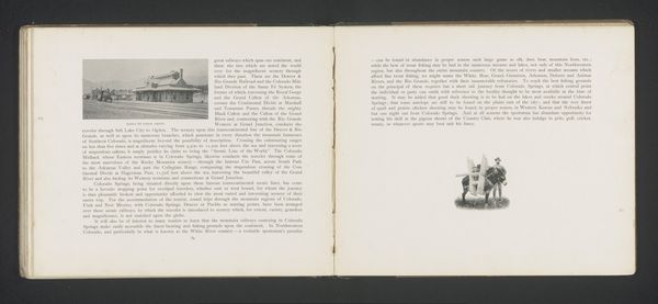 Curator: Here we have what appears to be a page from an old promotional booklet. It's entitled, "How to Reach Colorado Springs," and features a photographic print of the Rio Grande train station from before 1893. Editor: My immediate impression is of a quiet, well-ordered scene. The monochrome palette and aged paper lend it a nostalgic, almost romantic air. The composition, with the station centered, feels very deliberate, very balanced. Curator: Indeed, the balanced composition reinforces the sense of order you mention. It's a classic example of how railroads were marketed during that era. The photograph is clean, crisp, seemingly designed to convey reliability and progress. It certainly evokes a sense of the burgeoning American West. Editor: What strikes me is the typography; that rather florid, hand-drawn typeface used for the title. It clashes a bit with the practical intent, almost trying too hard to make rail travel seem… adventurous? There is tension between text and image here. Curator: That tension, as you call it, is very telling. On the one hand, there's the efficient, modern marvel of the train, but on the other, there's the need to dress it up with an appeal to the sensibilities of the time. Railroad companies of the period acted much like PR agencies hoping to both embody and curate impressions of progress. Editor: I find myself wondering about the station’s physical structure, the design elements of the building itself. It is certainly simple in shape, but appears a more solid and comforting arrival location amidst potentially uncertain circumstances. It almost says that although it seems modern with railway and text on the page, these details reflect deep stability, and perhaps some measure of grandeur. Curator: Precisely! Consider the intended audience: potential travelers who needed reassurance about safety and accessibility. A promotional piece like this needed to overcome anxieties and paint an image of travel as a reliable and desirable experience for settling families. Editor: The entire document becomes an interesting window into the era’s anxieties and aspirations. We can now interpret the aesthetic as communicating very directly on the possibilities for anyone moving West. I hadn’t initially considered the level of directed consideration behind even what font was chosen to welcome me in Colorado. Curator: Yes, a closer look can reveal the intersection between art, commerce, and cultural messaging—an exercise that makes experiencing such an historical document still vital today.