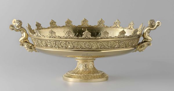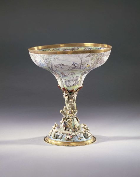 Editor: This gorgeous, glimmering object is a Standing Cup, made sometime between 1630 and 1899. It’s currently held at the Metropolitan Museum of Art, and it's made of gold and glass. Wow, the delicacy of it strikes me! The baroque flourishes paired with such crystalline transparency feel almost ethereal. What catches your eye, what do you make of a piece like this? Curator: Ethereal is a fantastic word! It truly is like holding light itself. The Standing Cup, especially one crafted during this period, speaks to so much – power, artistry, and of course, indulgence! Imagine the hands that have held it, the stories it could tell after witnessing countless banquets. It’s less about pure function and more about theatre, isn't it? How does that emphasis strike you? Editor: Theatre! Absolutely! I can almost picture it gleaming under candlelight. I hadn’t really considered it as having a performative element, like it’s not just *for* something, it’s meant to be *seen*. Is that a hallmark of Baroque decorative art? Curator: Precisely! Baroque isn’t shy. Everything is amplified: the emotions, the drama, the sheer opulent skill on display. Notice the intricate carving and how the gold enhances the glass—it elevates something commonplace into an object worthy of a king’s table, or at least someone who wishes they were a king! Do you think it succeeds in that elevation? Editor: Oh, undoubtedly! Before, I was caught up in the details, but you're right; it’s about making a statement. It’s pure aspiration in decorative form. Curator: Exactly! These objects allow us to glimpse into a world where art wasn’t just observed, but actively participated in, flavoring the rituals of daily life with beauty. And hopefully sparking conversations centuries later, wouldn't you agree? Editor: Definitely. Thanks to you, I see a story and a performance, not just a pretty cup. It’s like I’ve been given a backstage pass to a different time.