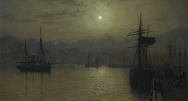 John Atkinson Grimshaw made this painting of Waterloo Bridge, London, looking east, in the late 19th century. It depicts a nocturnal view of London’s industrial Thames, shrouded in a smoky, green-tinged atmosphere. The painting’s meaning emerges from its cultural and historical context. Made in an era of rapid industrialization, the painting romanticizes the urban landscape, even as it acknowledges the effects of pollution and industrial labor on the city. The painting shows the famous architecture of the city alongside the tools of maritime labor, capturing a key moment in the transformation of London’s commerce. Grimshaw's stylistic choices – the soft lighting, muted colors, and careful attention to detail – reflect the influence of the Aesthetic movement, but the painting also shows the reality of London's working river. Art historians use a range of resources, from census data to art market histories, to understand the complex interplay of social conditions and artistic production. Paintings like this help us reflect on our changing relationship to the built environment.