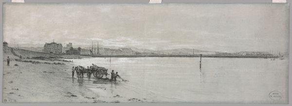 Curator: Here we have Isaac Weissenbruch's "Drie aangelegde schepen met figuren aan het werk," created sometime between 1836 and 1912. It's a pen drawing showcasing docked ships, a classic example of Dutch Realism, now held here at the Rijksmuseum. Editor: You know, it looks incredibly tranquil. Almost like a visual lullaby. The textures created with the pen give it this gentle, watery feel. Even though it's just pen and ink, I feel like I can smell the salty air. Does that sound crazy? Curator: Not at all. Weissenbruch had a real knack for capturing atmosphere. Water, in art, has a deeply complex, historically recurring, symbolic role to play: here the pen work reflecting the sky gives this scene an incredible stillness— almost reflective, or indeed, meditative in its nature. Water has long played this role of calm reflection and even cleansing. Editor: Right, that makes total sense! Looking at the placement of the figures on the ships, they don't dominate. It's more like they're a part of the landscape itself. Curator: Precisely! They represent the daily rhythms, their intimate connection with the waterways as source of sustenance and trade, reflecting their rootedness. In Northern European painting, the placement of figures is very intentional, mirroring daily work while simultaneously suggesting a continuity between land and society. It reinforces an interdependent, reciprocal connection with nature. Editor: I like how it's not overtly dramatic, not trying to shock. It’s an honest glimpse into everyday life. Curator: Indeed. Weissenbruch aimed to portray the reality he observed, without embellishment, reflecting the social and artistic movements of the time. A slice of time presented as it existed; with realism often comes a search for some deeper form of truth. Editor: Makes you wonder about the stories those figures could tell. It reminds us to look deeper, and be aware of what daily activities are, perhaps not overtly celebrated as glamorous; but worthy of documentation all the same. Curator: Exactly. Art exists in the mundane just as powerfully as it does in the sublime. Weissenbruch masterfully reminds us of this through subtle realism. Editor: A very calm note on which to pause and reflect then.