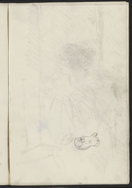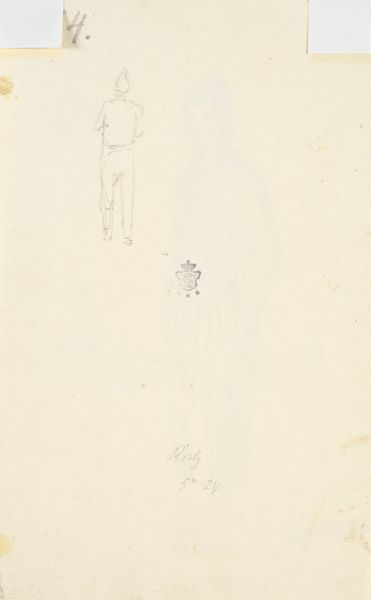 Editor: Here we have C.A. Lorentzen's "Sketch of a Woman with Raised Arms," created between 1746 and 1828, using pencil on paper. It feels very preliminary, like a quick study. What stands out to you in this piece? Curator: Immediately, I’m struck by the artist’s attention to line and form. Observe how the tentative pencil strokes create a sense of volume and movement in the woman's drapery. The economy of line, though incomplete, still manages to convey a sense of classical contrapposto, wouldn't you agree? Editor: I do, now that you point it out! It's just a few lines, but they suggest a body in motion. The arms, though...they are barely there, ghost-like. Curator: Precisely. Note the spatial relationships at play. The placement of the figure towards the upper right emphasizes the blank space. The interplay of positive and negative space creates a tension, drawing the eye to the defined portion of the dress while hinting at something grander. Does that resonate with you? Editor: It does. It makes me wonder what the artist intended. Was this meant to be a finished work, or just a preparatory sketch? Curator: A fair question. Regardless of its intended function, its formal elements invite contemplation on the essence of representation. We can appreciate its raw materiality, the way pencil meets paper to evoke form. Editor: I see it now – the beauty isn't just in the subject, but in the way the artist uses line and space itself. It's almost abstract in its incompleteness. Curator: Indeed. By stripping away the non-essential, Lorentzen lays bare the very act of artistic creation, making this simple sketch, if we view it correctly, a quite rewarding experience.