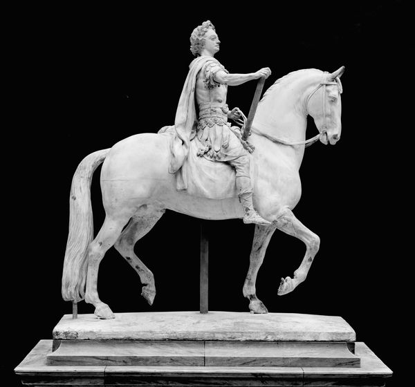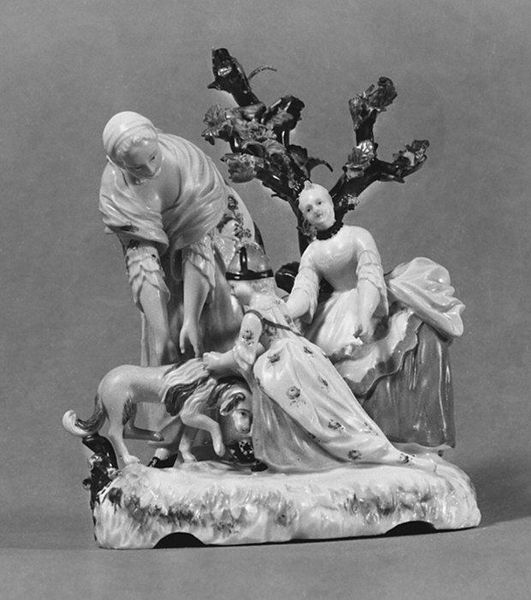 This porcelain sculpture, Europa and the Bull, was created by the Meissen Manufactory. The monochromatic porcelain presents a study in contrasts. The figures, arranged in a dynamic pyramid, convey both tension and classical grace. Notice how the smooth, flowing lines of Europa's drapery contrast with the bull's muscular form and the jagged base. This interplay highlights the scene's inherent drama: a moment of abduction cloaked in pastoral beauty. The Meissen Manufactory, drawing from mythological narratives, encodes power dynamics within this tableau. The bull, a symbol of raw, masculine force, is juxtaposed with Europa, whose vulnerability is softened by the Neoclassical aesthetic. This piece can be seen as a commentary on desire, dominance, and the aesthetics of power, all rendered with meticulous detail in porcelain. Consider how the formal elements—the sculpture's composition and the texture of the porcelain—intersect with the narrative. It prompts us to examine the complex layers of meaning embedded within this seemingly simple mythological scene.