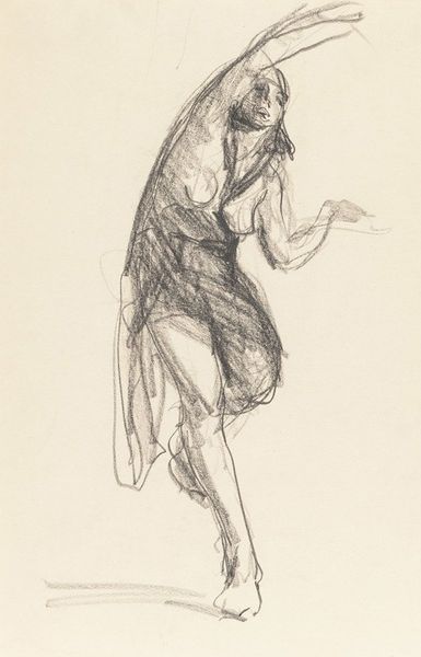 Editor: So this is John Singer Sargent's "Standing Figure with a Spear," a pencil drawing. It feels like a preliminary sketch, very immediate and raw. What jumps out at you about the materials and process used to create this? Curator: Immediately, I consider the societal implications of choosing a relatively "cheap" material such as pencil. It democratizes art-making, moving away from the exclusive domain of oil paints and bronze sculpture that were reliant on wealthy patronage and guilds. Pencil sketches often represent the initial stages of planning – studies meant for larger projects. How might we interpret the socio-economic reasons and intended purpose for the creation of this particular study? Editor: That’s interesting. I hadn’t thought about pencil as a choice loaded with meaning like that. What would be the labor or artistic skills required for this specific type of work? Curator: Well, consider the draftsmanship required to quickly capture the figure’s stance, and the subtle shading achieved through varied pencil pressure. Sargent’s facility allowed for rapid execution. It makes you consider not just the artwork itself, but also Sargent's role within the larger artistic economy. Were these sketches meant for public consumption or primarily for his personal study? Were assistants involved, or was this all his own hand? These questions point to the nature of artistic labor and production. Editor: I see what you mean. Viewing it as part of a larger system of artistic production really changes how I perceive it. I tend to view it just for how it looks. Curator: Exactly! Understanding the material and social context unveils the complexities of art, far beyond aesthetics alone. What did you make of the artistic license and skill evident? Editor: I guess what I now see that wasn't clear before is a shift in focus from appreciating the final 'product' to valuing its role in something bigger like production and labor.