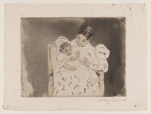 Mary Cassatt, an American artist who lived and worked in France, created this color print titled 'The Barefooted Child.' Cassatt lived during a time when women's roles in society were narrowly defined. She, however, defied convention by pursuing a career as an artist. Despite facing gender bias in the art world, Cassatt became a celebrated figure in the Impressionist movement. Here, we see a mother cradling her child, seemingly caught in a moment of quiet intimacy. Cassatt often depicted women in domestic settings, imbuing these scenes with emotional depth and psychological insight. It is important to acknowledge the historical context in which these images of motherhood were produced. While seemingly straightforward, they also reflect the cultural norms and expectations placed on women during the late 19th century. Cassatt developed alternative narratives around femininity. She chose to focus on the realities of women's lives, offering a nuanced perspective on the complexities of motherhood and female identity. These intimate portrayals invite us to reflect on the emotional bonds between women and children, and to consider the ways in which gender shapes our experiences of the world.
