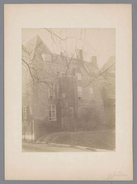 This photograph of 'Gezicht op Kasteel IJsselstein' presents a muted palette, dominated by soft browns and grays, evoking a sense of serene melancholy. The castle, veiled in what appears to be a misty atmosphere, rises as the focal point. Note how the photographer uses tonal gradations to suggest depth and distance. The bare trees in the foreground create a skeletal framework, emphasizing the architectural mass of the castle. The composition here is carefully structured. The strong vertical lines of the castle are counterbalanced by the horizontal sweep of the foreground, leading our eye towards the subject. This interplay of lines and forms creates a balanced, yet subtly dynamic visual experience. Consider how the photograph captures not just the physical presence of the castle, but also a sense of its historical weight and enduring presence. This is not merely a depiction of a building, but an exploration of time, memory, and the very act of seeing.