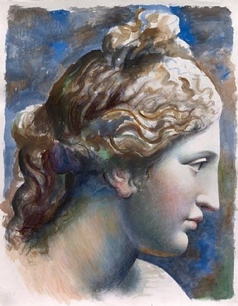 Editor: We’re looking at Pablo Picasso’s “Seated Woman,” painted in 1923. It's a portrait, mostly watercolor and oil paint. What I notice right away is how the blending of colors seems almost unfinished, giving it a very raw and honest feel. What's your take on it? Curator: A crucial element here is the flattening of form. Notice how Picasso minimizes depth, emphasizing the planar aspects of the figure. The interlocking shapes and shifting perspectives serve not to represent reality, but to create an independent aesthetic structure. The ochre and blue, along with visible brushstrokes, animate the composition. Editor: So, you’re saying it's more about the arrangement of shapes and colors than a true depiction of a woman? Curator: Precisely. The subject serves primarily as a vehicle for exploring pictorial construction. Think of how Picasso fragments the human form. Does the anatomical accuracy even matter, or is it rather the orchestration of lines and tones that truly interests the viewer? Editor: I guess I was expecting something a bit more traditionally… portrait-like. I'm starting to see how the colors, especially how they bleed into each other, make it much more abstract. Curator: And the cubist deconstruction adds to the visual texture. Consider also the role of line: sharp, decisive lines juxtaposed with soft washes create visual tension, almost as if two artistic systems were colliding. This kind of deliberate disruption of traditional forms allows him to construct a powerful modern language. Editor: So, it's almost like the woman is less a subject and more a building block for something else entirely. I didn’t notice that at first! Curator: Indeed! Examining the underlying framework enables you to truly understand how the work achieves its impact. Editor: Okay, that helps a lot. Thanks for explaining it in that light!