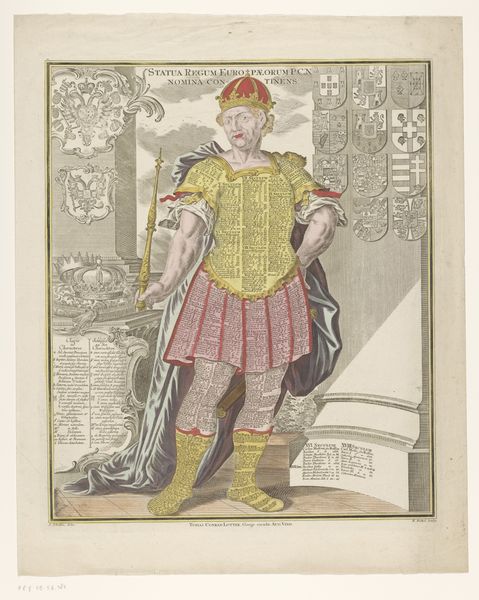 Cornelis Anthonisz. created this print of Hendrik II of France on horseback in the 16th century. Here, the symbols of power are undeniable: the king in full armor, the horse as a symbol of nobility, and the scepter he carries, all designed to convey authority. But consider the scepter itself. It is a motif that stretches back to antiquity, seen in the hands of gods and emperors alike. The scepter isn't merely an object, it's a signifier, pregnant with the weight of history and tradition. Its form might shift—from a simple staff to an ornate rod—but its essence remains: a visual assertion of dominance. Think, too, of the psychological impact. The scepter speaks to our collective memory, triggering a primal recognition of leadership and control. This image, then, isn’t just a portrait; it’s a carefully constructed statement designed to resonate with deep-seated notions of power. It's an icon, embodying a timeless yearning for order and authority.