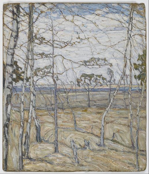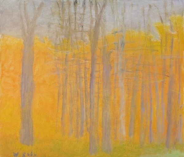 "Birch Trees" is a painting by Sirak Skitnik, created at an unknown date. Skitnik was a Bulgarian artist, writer and activist who lived through turbulent times, including the Balkan Wars and two World Wars. This painting is a landscape dominated by cool blues and greens, punctuated by the stark white trunks of birch trees. The loose brushstrokes and muted palette evoke a sense of stillness and quiet contemplation, a refuge from the societal upheaval that marked Skitnik’s life. As an artist, he sought to capture the essence of the Bulgarian landscape and the spirit of its people. It is hard not to consider the identity of birch trees themselves. Their delicate but strong presence mirrors the resilience of the human spirit amidst adversity. Skitnik does not offer a purely traditional representation of nature. Instead, the birch trees serve as metaphors for hope and perseverance. "Birch Trees" invites us to reflect on the relationship between nature, identity, and history, and on how art can offer solace in times of crisis.