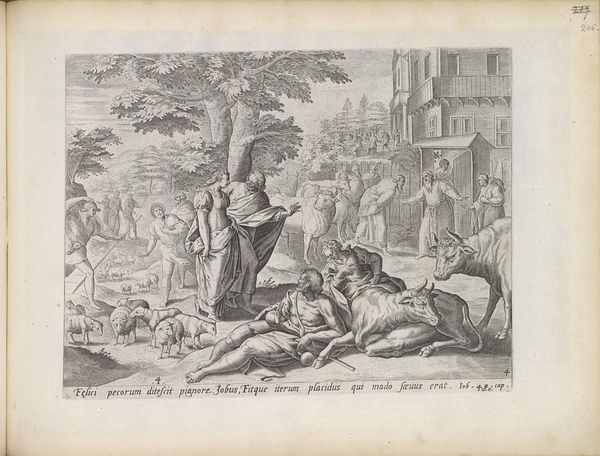 Curator: This intricate engraving is entitled "Koning Josia laat de offerplaats in Betel ontheiligen," dating back to 1643. It's currently housed at the Rijksmuseum. Anonymous, or currently unknown, but steeped in the conventions of its era. Editor: My goodness, there's a lot happening in there! It feels… intense. Dark, dramatic. A visual feast—if you're into dramatic destruction. There's so much to unravel here. Curator: Indeed. This work encapsulates the story of King Josiah defiling the altar at Bethel. Iconographically, we see figures enacting destruction—demolishing idols, disinterring bones. The whole piece feels like a purification ritual made visible. Note the careful attention to detail in the clothing. The body language indicates their engagement and activity in the event. The pyramid, column, mountain, people on the stairs. The space between these forms is so great they do not relate visually, making each group more segmented and isolated. Editor: So, destruction as a form of renewal, yes? It does play almost like a theatrical production with Josiah taking center stage in the process of erasing previous symbols. He becomes the symbol for something new, whatever "new" means to him. Do you find it ironic how something has to be made into something, and thus be unmade once the novelty is over, just so something can be made out of something. The cycle starts again! Curator: Cycles of destruction and renewal are pervasive in art. In a more limited sense of this picture and subject. Consider this piece not just as an act of iconoclasm, but also the reassertion of religious and political power. Notice how the architecture on the left stands to imply past forms that should remain dead, while at the right they engage in active, yet futile, demolishing activity. The baroque dynamism amplifies that power by highlighting Josiah's agency in that power display. Editor: Power plays; visual theatrics—it's all there. I find the casual desecration of human remains jarring in the work— the skeletal remains really put emphasis on what this ritual means. They are literally disrupting lives of the people from the past. So much to consider on our time, their space, where we are going and where we’ve come from. Curator: A potent reminder, then, of how the symbols we create and destroy shape our world. A good conversation for us to step away and think over. Editor: A thought-provoking dive, for sure! Thank you!