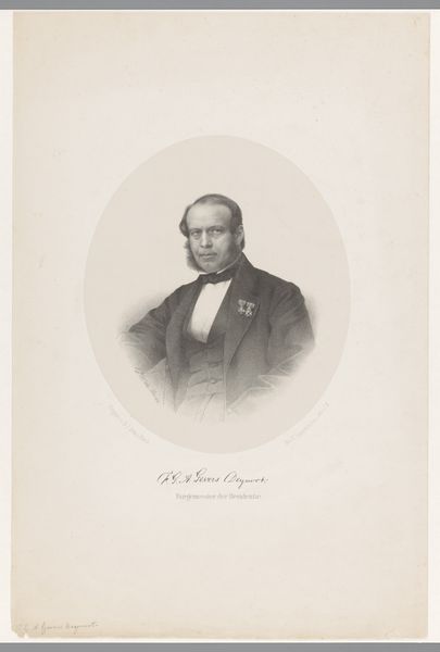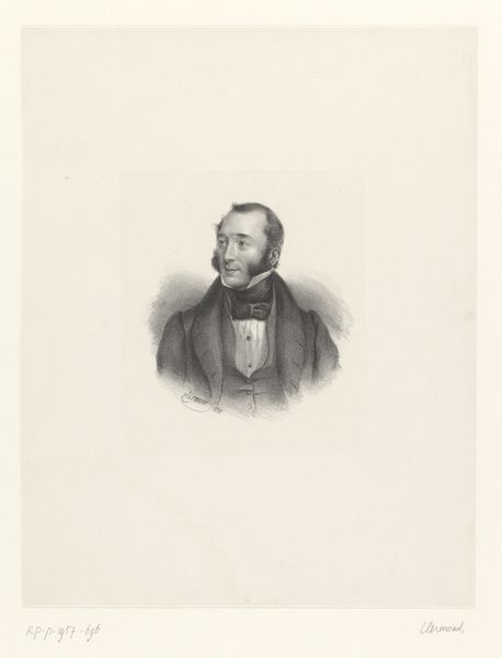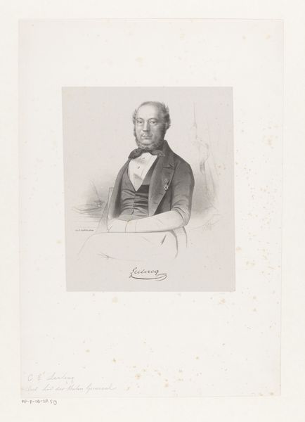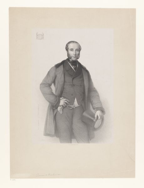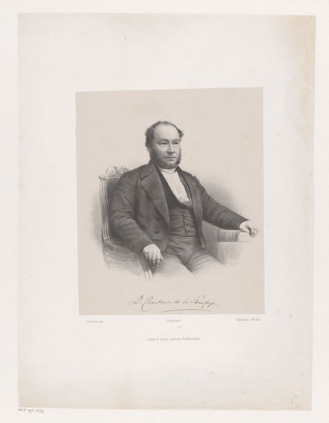 This is a portrait of Herman Johan Engelkens, made by Johan Hendrik Hoffmeister using lithography. This printmaking process involves working on a flat stone or metal plate with a greasy substance, then applying ink which adheres only to those areas. The appeal of lithography was in its relatively direct means of production; it allowed for a drawing-like effect that other printmaking processes didn't. In this portrait, the softness of the lithographic crayon allowed Hoffmeister to render the textures of Engelkens's clothing with precision. But what makes it particularly compelling is how the printmaking process relates to the subject. The mechanization of image production chimes well with the rise of a new industrial and professional class, of which Engelkens was a part. Ultimately, this portrait, like others of its kind, documents the means of production in nineteenth-century society. By considering the labor, processes, and materials, we appreciate the cultural and social meanings embedded in this artwork.