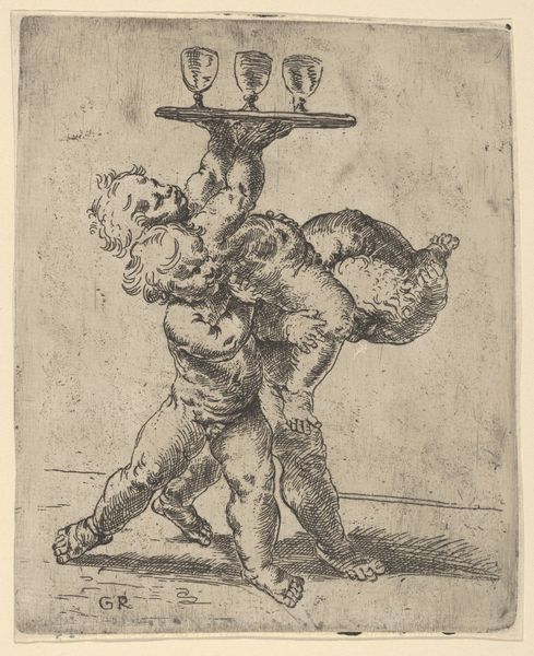 Stefano della Bella made this small etching of three children carrying a tray in the mid-seventeenth century. This print is a marvelous example of the kind of art that circulated among collectors and connoisseurs in Early Modern Europe. The children's nudity recalls classical sculpture, but here that seriousness is combined with humor, as they struggle to carry a tray of glasses. The print was made during the Baroque era, when artists were experimenting with ways to create dynamic and theatrical compositions. The exaggerated poses and the precarious balance of the figures contribute to this effect. Prints like these were often collected in albums or displayed in frames, and they were a way for people to engage with art in a more intimate and personal way. Catalogues and inventories of the period can give us insight into who collected prints like these, and how they were valued. By studying the collecting habits of the past, we can better understand the social and cultural role of art in Early Modern Europe.
