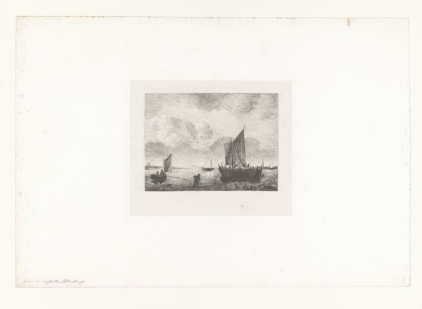 William Unger created this artwork titled "Waterende Koeien" using etching. Unger, born in the mid-19th century, navigated a world undergoing rapid industrialization. His work reveals a deep connection to the rural landscape, capturing the rhythms of agricultural life that were beginning to be displaced by urban expansion. Unger's choice to depict cows, animals deeply interwoven with the Dutch identity, suggests a longing for a simpler, more pastoral existence. The image evokes a sense of peace, yet it also reflects the economic realities of the time. In the late 19th century, agriculture was not merely a picturesque scene; it was a vital source of income for many families. The cows, then, represent not only nature but also the livelihoods sustained by the land. Through this tranquil scene, Unger invites us to reflect on the shifts occurring in Dutch society, and to consider the human stories embedded within the landscape.