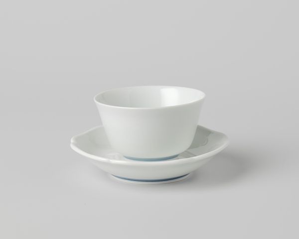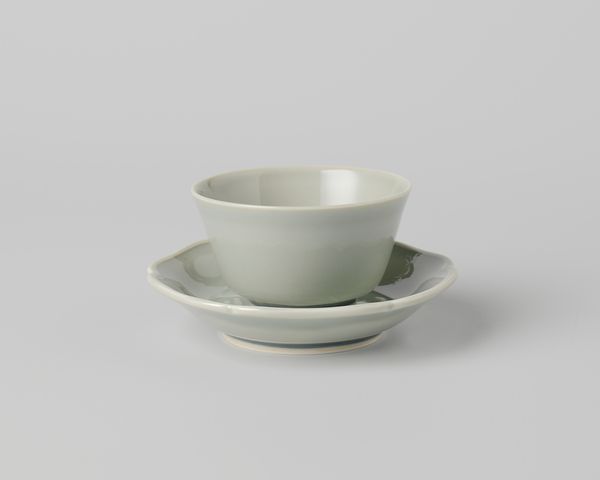 Editor: So, this is a ceramic earthenware dish, circa 1910-1920, created by N.V. Plateelbakkerij Zuid-Holland. The simplicity of the design is striking, just these thin green lines against the off-white glaze. What can you tell me about how something so simple was viewed at the time? Curator: It's tempting to see this dish simply as utilitarian, but we have to consider the broader social context. The early 20th century saw the rise of decorative arts movements reacting against industrial production. Were objects like this perhaps claiming a kind of democratic accessibility to beauty, for everyday life, resisting elitism? Editor: That's interesting, making art more available. But was there also a perceived distinction from ‘high art’? Curator: Precisely! Museums and galleries were simultaneously enshrining certain objects as "art," and these distinctions solidified artistic hierarchies. A dish like this, mass-produced yet attempting aesthetic appeal, existed in a complex relationship to both industry and the art world. It raises questions about value, taste, and the very definition of art itself. Did owning objects like this represent a kind of aspirational middle-class identity? Editor: So, the dish is not just a dish; it's a statement, in a way? Did the gallery acquire more objects like this one? Curator: In a sense, yes. Its aesthetic simplicity challenges traditional notions of artistic value and the museum's role in assigning it. And no, not yet at least. Perhaps we should advocate for acquiring more works to reveal the complexities inherent to the decorative arts! What have you gotten from looking at this piece? Editor: I'm struck by how much historical weight can be carried by a simple object, it reframes the concept of what "art" really means. Curator: Exactly! Hopefully, viewers will leave with that broadened understanding too.