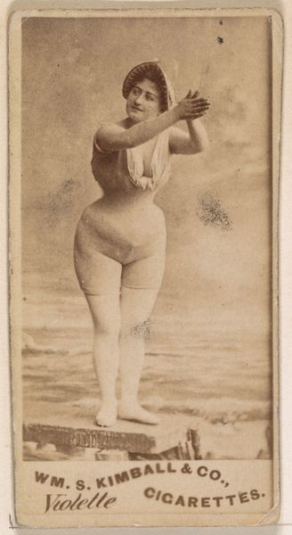 Editor: This is "Annie Boyd, from the Actors and Actresses series (N171) for Old Judge Cigarettes," created by Goodwin & Company between 1886 and 1890. It's an albumen print. The sepia tone gives it such a dreamy, antiquated feel, doesn't it? What strikes you most about this image? Curator: That's a lovely way to put it! It does feel like peering into a sepia-toned dream. I'm drawn to the blatant objectification. I imagine Annie Boyd's talent got somewhat lost under the haze of cigarette smoke and consumerism. Editor: That's a darker perspective than I initially considered! Do you think she had any agency in how she was portrayed? Curator: Ah, agency... that’s always the million-dollar question, isn't it? Probably as much as a goldfish has in a fishbowl! Seriously, I bet she was flattered by the attention. It could lead to more bookings, though, or maybe a wealthy patron. Do you see how the print is made to look like a drawing? Almost as if to make it 'respectable' rather than real. It's a lovely tension. Editor: Now that you mention it, I see it! The sort of sketched quality is rather elegant. What did these kinds of cards mean for female performers? Curator: Survival, dear heart, probably mostly survival. The theater world wasn’t always kind. Editor: This has really transformed my perspective on what initially appeared like a simple, antique portrait. I am starting to look beyond the surface now. Curator: Wonderful, my work is done! Every layer peeled away reveals more stories. Never forget that.