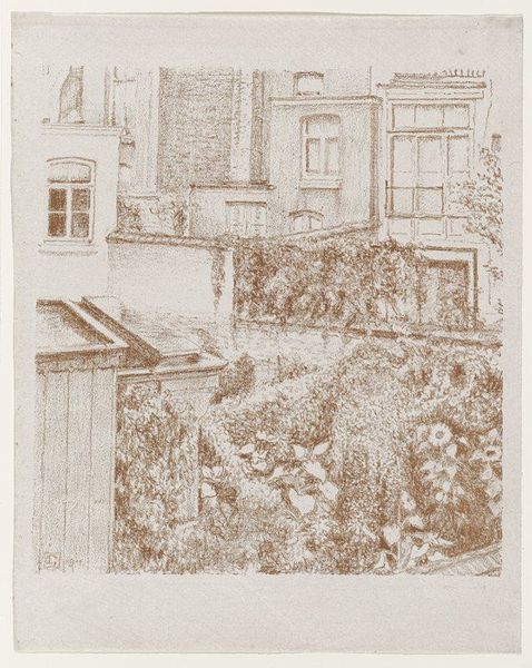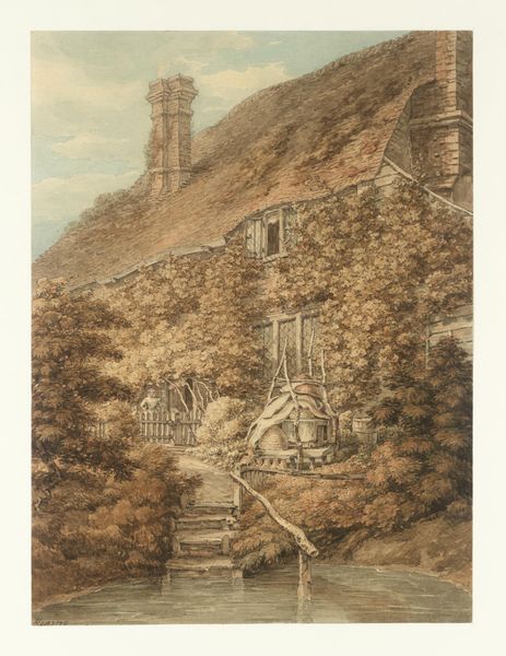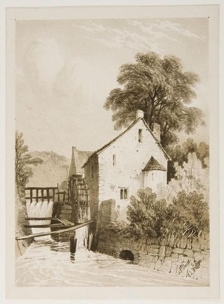 Editor: This is "Canal in Sydney Gardens" by David Gentleman. It’s quite detailed. The contrast between the stark white bridge and the darker water creates such a focal point. What do you see in this piece? Curator: Notice how Gentleman uses line to define form. The precision in the architectural details of the building contrasts with the softer, almost blurred rendering of the surrounding foliage. It's a careful dance between structure and fluidity, wouldn't you agree? Editor: Definitely. I hadn't considered the juxtaposition of styles. Curator: The composition draws the eye along the canal's curve, a deliberate choice by the artist. It is a beautifully balanced piece. Editor: I appreciate how your analysis reveals the subtleties in the artist's technique. Curator: And I found your initial observation on the focal point incisive.