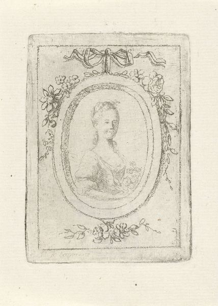 Editor: Here we have what's thought to be a photogravure reproduction of an engraving of Maria II Stuart, the wife of Prince William III, dating back to between 1860 and 1880. Looking at this print, the first thing that strikes me is how it uses Baroque visual conventions, like the portraiture and decorative flourishes to convey royal power in an era far removed from the actual monarchy, even as the original work from 1688 would itself serve to bolster dynastic prestige. What jumps out at you, seeing it now? Curator: That's a sharp observation. For me, it's intriguing to consider why this image of Maria II was being reproduced in the late 19th century, seemingly far from her actual reign. Think about the social and political context then. Photography had revolutionized image production, but historical portraiture, especially of monarchs, served specific public functions. What role did visual representations of historical figures play in shaping national identity during that era of rapid social and political change? Editor: It's interesting how a relatively simple portrait could speak to broader questions of nationhood and social memory, in addition to merely showcasing aristocracy. I never considered how the proliferation of images might have influenced public perception. Curator: Exactly! Was this reproduction aimed at solidifying a sense of shared British history, or perhaps at reinforcing the established social order? Whose interests were being served by circulating images of royalty, even those from centuries prior? Were these widely available or directed toward elite circles? And considering that the artwork seems to come from an album page, to what use was it directed? Editor: I hadn’t considered the intended audience for these types of reproductions, just how the image appears. It challenges my perception of "historical" art; these engravings continued to influence culture in their reproductions, for example in these albums! Curator: Precisely. Understanding that ongoing influence is key.