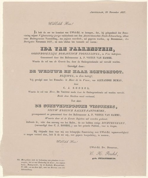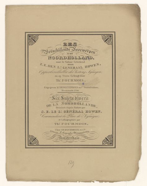 Editor: We're looking at "Un an de la vie d'un jeune homme…", or "A Year in the Life of a Young Man", a lithograph book by Victor Adam from 1824. The cover is… unassuming, but there's a delicate beauty to the lettering. It makes me wonder what kind of "true story" this young man is sharing. What catches your eye about it? Curator: Well, first off, "unassuming" is a kind word! It has the air of a faded photograph, doesn’t it? A little ghostly, like a half-remembered dream. But look closer – the typography! That swooping, swirling script – it's pure Romanticism, a longing for feeling, for drama. And think about lithography in 1824! That's still pretty early for the technology. What story do you think it hints at? One filled with intrigue or one mired in sorrow? Editor: I'm picturing something melancholic, perhaps. Given the Romantic era vibe and the "true story" claim, maybe a tale of lost love or artistic struggle? Curator: Exactly! And that "written by himself" bit? I bet the ladies swooned! The printing details at the bottom there gives the piece the tangible weight of production. All those layers between artist and audience, you know? Like holding history itself. Editor: So it's not just the story within, but also the story of *how* the story came to be. That's intriguing. A reminder that every artwork has a past life of its own. Curator: Precisely! And what did we gain, what would you say you were touched by when hearing about its process? Editor: Definitely the way it connects personal experience with wider cultural movements. The intersection of technique and emotion; very neat! Curator: It is! Let's dive deeper into more hidden pieces, shall we?