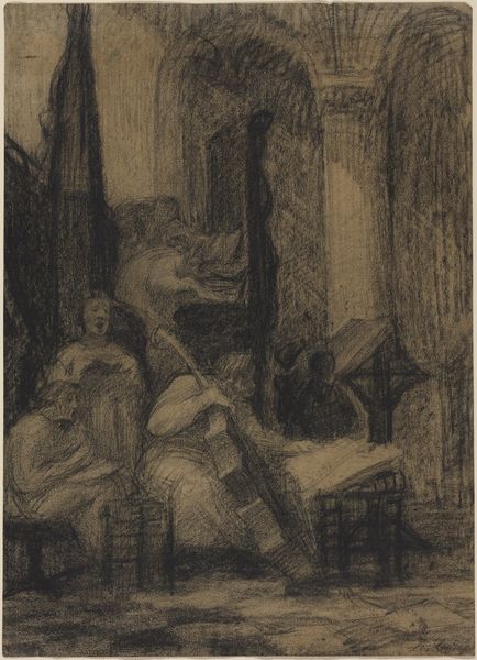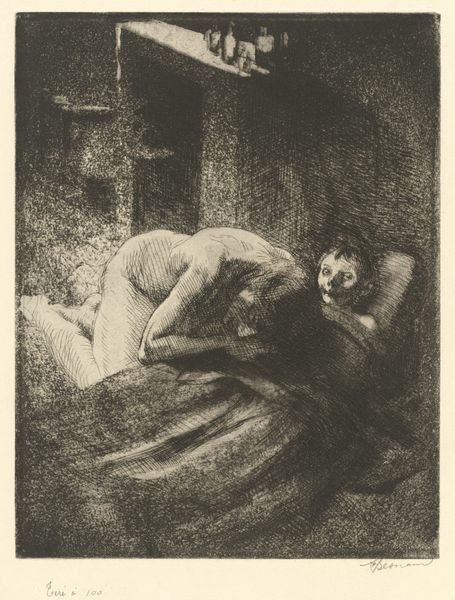This etching, "Interior of Charcoal Shop, Florence," by Donald Shaw MacLaughlan, captures a slice of life with a gritty texture. It's like MacLaughlan wasn't just depicting a scene but was also digging into the essence of what it means to work, to be surrounded by the tools and materials of your trade. The network of lines that build up the image are quite something; a kind of visual shorthand. The contrast between the deep blacks of the shop's interior and the lighter areas where the light catches is striking. Look at how the light falls on those sacks of charcoal. There’s a real sense of weight and form, achieved with such simple means. This reminds me of Piranesi. Both artists capture the monumentality of everyday space. There is something romantic about the way MacLaughlan embraces the imperfections and the rough edges, inviting us to find beauty in the mundane.
