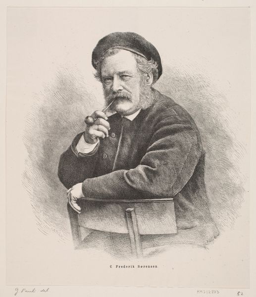 This is H.P. Hansen's engraving of Carl Frederik Sørensen. The Danish artist is portrayed with a pipe, a symbol of contemplation and leisure deeply rooted in the cultural landscape of the 19th century. The pipe, grasped rather than smoked, is a fascinating motif. Consider its echo in Dutch Golden Age paintings, where similar objects accompany scholars and gentlemen, signifying intellectual pursuits and social status. Yet, this symbol is far older, found in indigenous cultures worldwide, where the pipe is often central to rituals and community. Here, though, it's the gesture that captivates. The pipe isn't merely an accessory. It's an extension of Sørensen’s internal world. This pose, reminiscent of the melancholic scholar, evokes a sense of introspection, a connection to past traditions, and a foreshadowing of the anxieties of modernity. The pipe’s evolution reflects our own shifting relationship with the world, from ritualistic object to a marker of identity.
