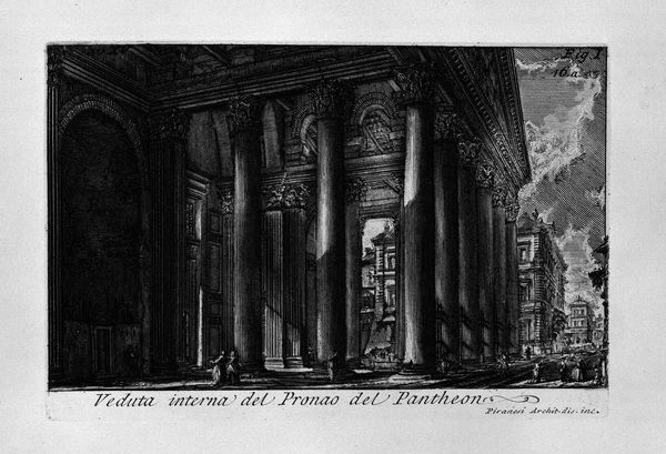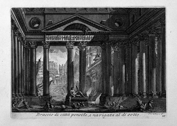 Giovanni Battista Piranesi created this etching of Santo Stefano Rotondo, one of Rome’s oldest churches. The image is dominated by a dense forest of columns that recede into shadow, creating a powerful sense of depth and architectural complexity. The monochromatic palette and intricate linework emphasize the texture of the ancient stone. Piranesi masterfully uses perspective to draw the viewer's eye deeper into the space, creating a sublime effect. The architecture isn’t merely represented; it’s re-imagined as a theatrical space. By playing with scale and light, Piranesi destabilizes our sense of space and proportion. Notice the sharp contrasts between light and shadow, a technique that heightens the drama and intensifies the emotional impact. Piranesi’s etching serves not just as a record but as an interpretation, reflecting the 18th-century fascination with classical antiquity. The architectural detail and dramatic lighting combine to evoke a sense of awe and the sublime.