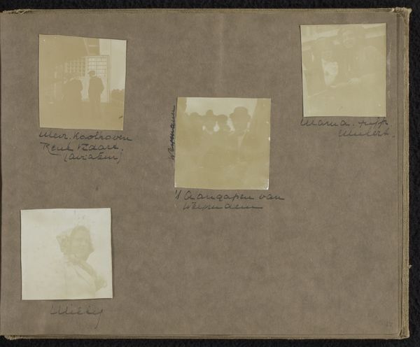 Editor: So, here we have "Vier foto's van een vakantie in Noordwijk"—Four Photos from a Holiday in Noordwijk—taken by Carolina (Loentje) Frederika Onnen, sometime between 1911 and 1918. They are albumen prints, so photography, but also something handmade... and almost like a relic from a distant era. It feels intimate, almost like flipping through someone’s family album. How would you interpret these images? Curator: For me, the material reality of the albumen print is key. We’re not just looking at photographs; we're looking at objects made with specific chemical processes. Albumen printing, popular then, required meticulous work with egg whites and silver nitrate. The labor embedded within the process reveals the societal value placed on capturing and preserving memories during this period. Editor: Interesting. So you are saying the materials used were as important as the final photos themselves? Curator: Precisely. Think about it. These weren’t mass-produced digital files. Each print required hands-on crafting. The muted tones aren’t just an aesthetic choice; they’re a consequence of the materials and techniques available. And who was performing this labor? What resources were readily available and accessible to those crafting them? Editor: It's fascinating to consider the economics and technology involved in making these photographs accessible during this era. It goes beyond just taking a snapshot. Curator: Exactly. Even the act of placing them in an album highlights the effort to organize and contextualize personal narratives within a specific social framework. Were they consciously emulating painted portraiture with the way the sitter is posed? Considering those processes makes the work richer, more meaningful. Editor: That makes so much sense! Thinking about the labor and resources needed highlights the value and exclusivity these photos possessed. I never would have considered the "material life" of a photograph! Curator: Precisely, seeing the process gives the final artifact so much more life.