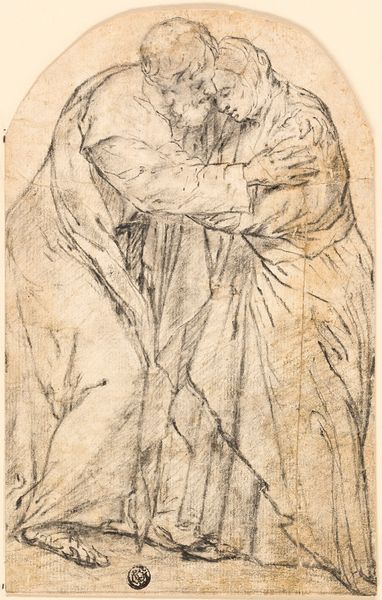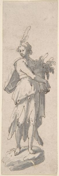 Lambert Lombard created this drapery study with pen in brown ink and wash in the 16th century. Lombard, who journeyed to Rome to study classical and Renaissance art, brought Italian High Renaissance ideals north of the Alps. During the Renaissance, fabric held significant symbolic weight. It was employed to convey status, wealth, and cultural identity. Through his skillful rendering of folds and shadows, Lombard captures the tactile quality of the fabric, inviting viewers to feel its weight and texture. The draping conceals the wearer, focusing our attention on its aesthetic qualities while suggesting themes of modesty, concealment, and the construction of identity. The study provides insight into the artistic practices of the time, when drawing from life and classical sources was essential for artistic training. While seemingly a simple sketch, it embodies the complex interplay between art, culture, and the representation of the human form.