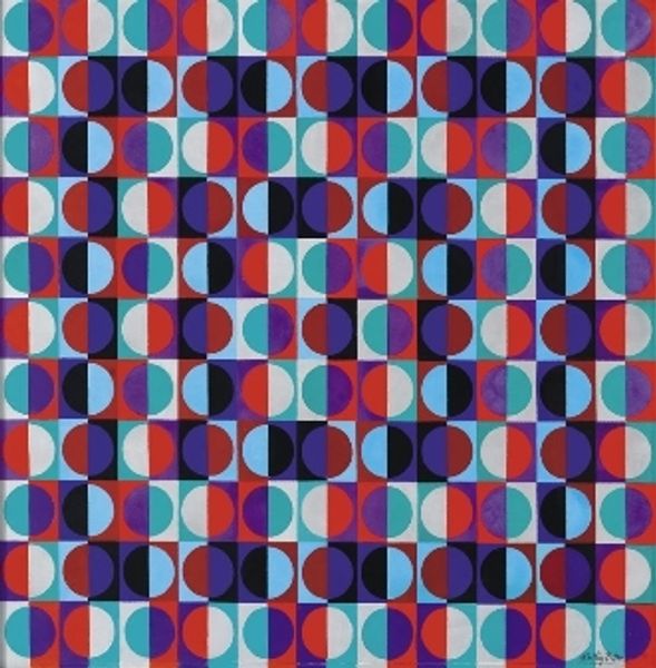 Victor Vasarely made this dazzling pattern, Ondocto-fa, using blocks of colour to trick your eye. The colors are laid down flat, but the way Vasarely paints them, those shapes seem to ripple like waves in a pond. Up close, you can see how crisp those edges are, how each color is clearly defined. He’s not blending or smudging; it’s all about that precise placement. It's like he's not just painting, but constructing a whole new visual language. Look at how the red diamonds jump out against that blue. Your brain struggles to make sense of this, it feels like these shapes are both flat and three-dimensional at the same time. Vasarely’s playing with perception, and I'm reminded of Josef Albers, another colour obsessive. Both artists prove that painting isn’t just about what you see, but how you see it. It's about the endless possibilities that emerge when you start pushing the boundaries of colour and form.