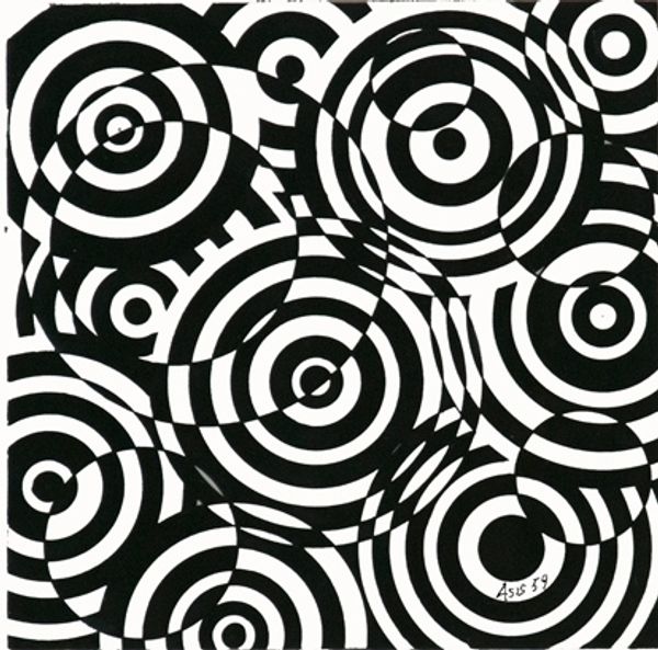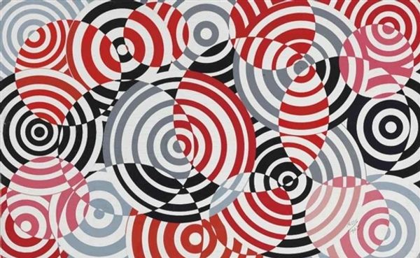 Antonio Asis made this painting, "Interférences en bleu et jaune", which, by the way, is a great title, using a playful rhythm of blue and yellow circles to set off a chain reaction of visual disturbances. I love this idea of art as interference; it gets right to the heart of what abstraction can do, which is to mess with our perceptions. The surface is flat, and the paint looks evenly applied. It’s hard to tell how the circles were made, but I imagine Asis used a stencil or some other kind of mechanical aid to get those clean lines. It’s the kind of painting that looks simple but is actually incredibly precise, and that precision gives it a kind of optical buzz, an active seeing. The way the circles overlap and interact reminds me a bit of Bridget Riley's Op Art. Like Riley, Asis is interested in how we see, in the way our eyes can be tricked and delighted by patterns and colors. It's about the joy of seeing, the ongoing conversation, and exchange of ideas that makes art so endlessly fascinating.