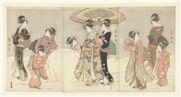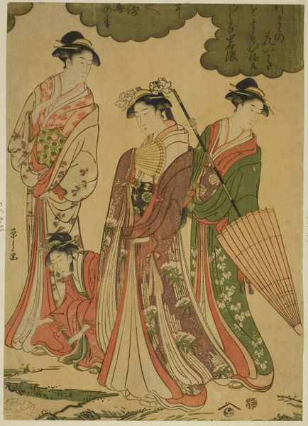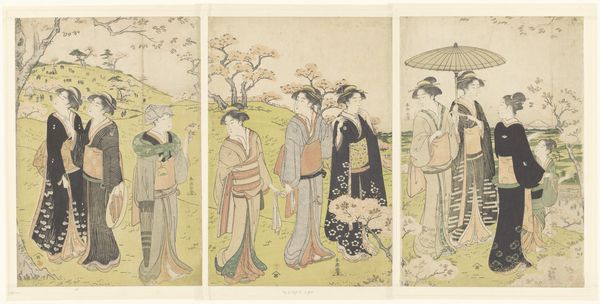 Torii Kiyonaga created this woodblock print titled "Courtesans and Their Child Attendants under Blossoming Cherry Trees." Here, the cherry blossoms, or sakura, symbolize the fleeting nature of beauty and life, deeply rooted in Japanese culture. These blossoms, so delicate and transient, evoke a sense of mono no aware—an empathy towards things—a sensitivity to their ephemeral nature. The motif of blossoming trees, often associated with renewal and the arrival of spring, reminds me of similar themes found in Renaissance paintings, where floral allegories often speak to the rebirth of Venus. Yet, here, under the sakura, the courtesans embody a more complex, poignant existence. Like Botticelli's Venus emerging from the sea, these figures possess a seductive power, but here, a darker undercurrent—a collective awareness of the fragility inherent in their existence—persists. This constant cycle of death and rebirth echoes through the ages, taking on new forms.