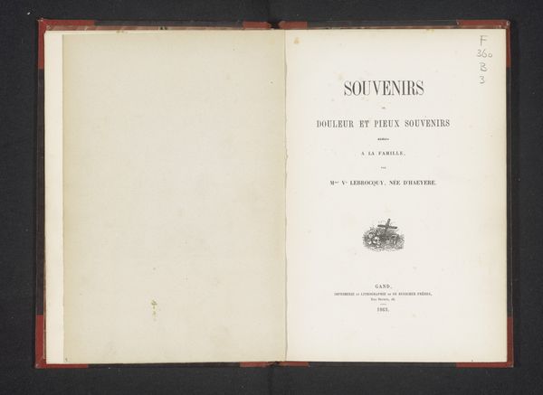Editor: Here we have "Sophia Frederika Mathilda, Koningin der Nederlanden," a portrait from 1877 featured in a book by Elise van Calcar, a print created with photography. It’s delicate but its age definitely shows. What’s your read of this piece? Curator: Primarily, I am interested in the composition. The print is set within a rectangle on the page. It presents a somewhat obscured figure that has a texture distinct from its paper frame. Can you describe that effect? Editor: Well, it seems fainter somehow, almost like a ghost image, like it is meant to be obscured. I also noticed the parallel rectangles framing the work itself and that within the book's layout. What is it about? Curator: These repetitive shapes, in varying tones, create a sense of depth, a nested reality. It directs the eye toward the central image, emphasizing its representational nature and its place within the whole, which has degraded throughout its history. Consider how the artist contrasts that delicate portrait with the graphic design, text, and emblem on the facing page, creating a structural juxtaposition that seems very purposeful. Editor: It is true, both pages make a contrasting yet coherent form. I think that focusing on the formal choices makes the piece seem more relevant. Curator: Exactly, and perhaps that’s precisely what van Calcar intended—to examine the relationship between text, image, and context through simple structural elements. Editor: I’ve never thought to analyse a book as a sequence, but this has opened up some interesting avenues for viewing prints and photographic media!