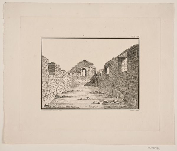 Editor: This is "Gezicht op een weg in Parijs," or "View of a Road in Paris," made by Charles Jacque around 1844. It's an etching, a type of print. The scene feels... unassuming. A quiet street, not one of those grand boulevards you usually associate with Paris. What do you see in this piece? Curator: I'm struck by the way the linear elements pull the viewer's eye deep into the scene. Notice the road, the fence, the buildings—they all converge, almost forcing us to consider what lies beyond. There’s a distinct contrast between the solid architecture on the left and the rather desolate, broken down wall on the right. What could that separation tell us about Parisian life during that period? Editor: That’s interesting. I hadn't really thought about the contrast in that way. It feels a bit…unbalanced, maybe? Curator: Perhaps. The buildings look established, even permanent. The wall, however, gives a sense of fragility. In Romanticism and Realism, sometimes everyday images stand in for a much broader truth. Could that division in urban structure speak to class divisions or changing times within Paris? Editor: So, even a seemingly simple street scene can carry complex meanings? It's like Jacque is hinting at something more, using these architectural elements as symbols. Curator: Precisely. Consider how the light falls, creating areas of clarity and shadow. Light is often symbolic; a stand-in for progress, maybe? A modern illumination on an evolving urban landscape? The symbol is what transmits memory from one era to another. Editor: Wow, I definitely have a new appreciation for this etching. Thanks for sharing your perspective, seeing how something like a street scene is laden with meaning! Curator: My pleasure! The beauty of art is its capacity to hold layers of history, symbolism and psychological relevance, if we only know where to look.