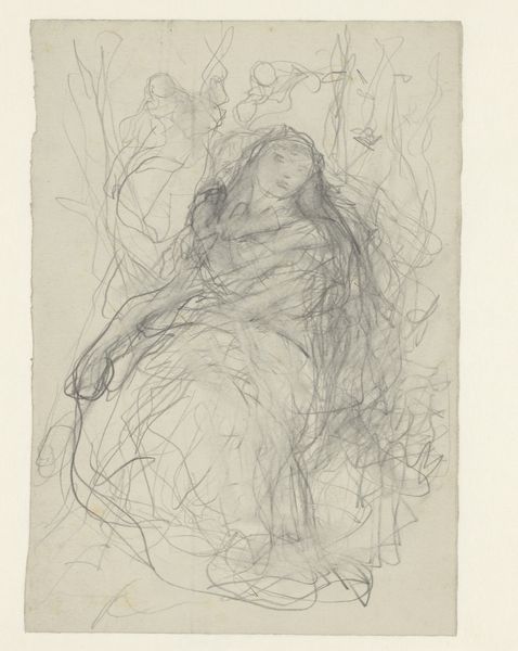 Editor: Here we have Matthijs Maris’s "Studie van een zittende vrouw", a sketch done sometime between 1849 and 1917. It looks like a very preliminary drawing, maybe something he jotted down in a sketchbook. It feels so personal and immediate, even unfinished. What catches your eye in this piece? Curator: It’s interesting that you use the word 'personal.' While Maris might have intended it for private use, its presence in a public collection like the Rijksmuseum immediately complicates that notion. The very act of displaying a 'study' transforms its meaning. It invites us to consider not only the artist’s process but also the institution's role in valuing and exhibiting the incomplete. What kind of statement is the museum making here? Editor: That's a really good point. So, are you saying the museum is suggesting that even sketches, these early explorations, have artistic value worthy of display? Curator: Exactly. The museum's selection process elevates what might have been seen as a fleeting, private moment to a work of public interest. Think about the late 19th-century art world - were incomplete works usually exhibited? Or is this inclusion indicative of shifting values? Editor: I hadn't considered that at all. It does make me wonder about other sketches from the time. Maybe they were kept private, seen as more process than product? It's like the museum is reframing our understanding of what constitutes ‘art.' Curator: Precisely. The 'politics of imagery' here involves questioning those established categories and examining the institution's power in shaping our perceptions of art’s role in society. Editor: This gives me a totally different perspective on what I thought was just a quick sketch. Now I'm thinking about the bigger picture of how we value art. Curator: That's exactly what's so exciting about looking at art this way – the opportunity to look deeper and connect the artwork to its broader context and cultural influence.