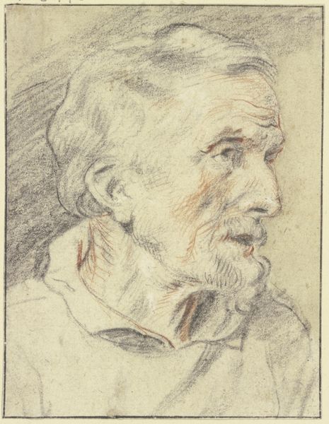 Anthony van Dyck made this study of a bearded old man’s head in black chalk, heightened with white, on gray paper. Van Dyck, a leading painter in the 17th century, lived in a society marked by rigid class structures, religious conflicts, and the rise of powerful monarchies. The drawing gives us a glimpse into the artist’s process of observing and capturing the nuances of human features. Van Dyck’s choice to depict an older man invites reflections on themes of aging, wisdom, and the value of experience. The man’s gaze directed to the left, along with the intricate details of his beard and facial lines, convey a sense of depth and individuality. Consider how Van Dyck’s detailed depiction of the man's face invites viewers to contemplate his life, emotions, and identity within the context of 17th-century society. This portrait encourages us to look beyond the surface and appreciate the complex identities of individuals who lived in a vastly different world.