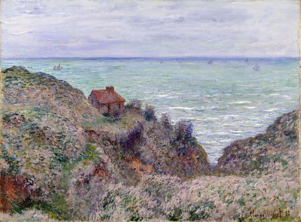 Curator: This is Alfred Sisley's "Lady's Cove," painted in 1897. He captures a fleeting moment by the sea using oil on canvas, a prime example of his plein-air work. Editor: My first impression is the light. It feels soft, like a hazy summer day. And the layers—cliff, beach, sea—create this gentle, calming rhythm. I want to sink into it. Curator: Sisley was deeply affected by light, it was really the core of Impressionism, which becomes apparent by looking at this work. You can almost feel the dampness of the rocks. The loose brushstrokes, almost chaotic close-up, resolve into this unified scene as you step back. The application itself mirrors that transience. What can we say of that beach full of vacationers? Editor: Look at how that texture emphasizes the making. It's clear the brushwork is essential to this, which really underscores the process, not just the subject. I wonder about the supply of his oil paints at that time; did the ready availability influence these larger-scale plein air expeditions? Curator: Oh, absolutely. The accessibility of materials plays an undeniable role in artistic output, especially plein-air. But beyond just availability, the changing social landscape made leisure activities more accessible, even commonplace, something that Impressionism was a product of. Sisley is almost documenting a new era of bourgeois recreation! It would seem that some industrialist has earned enough to take the day to travel to Lady's Cove to bask on the pebble strewn sand with their families! Editor: I hadn't thought about that angle of emerging trends of recreation that required industrialist success in manufacturing. To take a holiday requires someone made the vacation, both as product and result. Thinking on it though, it gives a sombering touch. Curator: Right. It gives an artwork context! What a beautiful intersection to unpack in just this single painting! Editor: Absolutely, Sisley captured not only the beauty of nature but also the dawn of a changing social dynamic reflected in pigment and process. Curator: Yes! Next time I see it I know that, instead of relaxing, I will feel conflicted.
