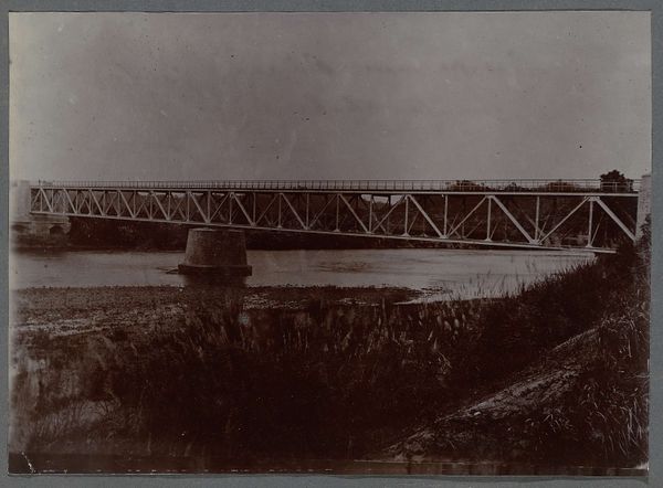 Editor: This photograph, entitled "Bridge over the Kali Konto at the Ngandjoek Sugar Factory in Java," dates from around 1925-1930 and is credited to Isken. It depicts a utilitarian bridge set against a backdrop of what appears to be agricultural land. It feels very stark. What historical layers might we unpack in this image? Curator: This photograph, while seemingly a simple landscape, speaks volumes about the colonial project and its impact on Indonesia. The bridge itself, a symbol of connection, is inextricably linked to the sugar factory, which likely represents the exploitation of land and labor under Dutch colonial rule. Can you see how this seemingly neutral scene is actually deeply political? Editor: I see what you mean. The "exotic" landscape aestheticized as "orientalism" contrasts with what the bridge *enables*: the industrialized exploitation of sugar production. The local environment looks almost dominated by the bridge and its implied purpose. Curator: Exactly. And consider who "Isken" was and what role they played. Was this photographer commissioned by the sugar factory, or were they independently documenting the landscape? Understanding their positionality helps us interpret the image more critically. Think about whose voices are silenced in this photograph. Editor: That's a powerful point. We're seeing the landscape through a particular lens, one that might normalize or even celebrate the colonial project. Curator: Precisely. How can we challenge the dominant narratives embedded in images like this, bringing awareness to its implications in our current global landscape? How might we decolonize our gaze? Editor: I suppose it begins with acknowledging the power structures inherent in the image itself and researching the full story. I learned how easily landscape photography can hide a complex network of relationships. Curator: Absolutely. And remembering that even seemingly objective images can perpetuate systems of inequality.