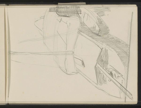 Curator: This sketch by Willem Witsen, dating from about 1901 to 1907, is entitled “Kade met schepen, mogelijk het Damrak te Amsterdam.” It's currently held here at the Rijksmuseum. Editor: Well, that’s a mouthful, but looking at it, I’m immediately drawn to the simplicity. There's a sense of… industrious calm, wouldn’t you say? And the pen work is so immediate. Curator: It’s rendered in graphite and pen, primarily. Witsen was a master of suggestion; he uses very few lines to create a complex scene. This drawing gives insight to the materials used during this time that helped create the image that we now know, photography, art, advertisements all rely on graphite for mock ups. Editor: It speaks to the bustle of Amsterdam's harbor, a hub for trade and labor, but almost dreamlike, wouldn’t you agree? One wonders about the type of pen used and the source of its materials, was it a simple goose quill or a new fancy machined fountain pen? Curator: Oh, absolutely. The quick strokes capture the essence of movement and light playing on the water and the ship's hulls. Imagine the coal being transported from the ports directly from ship to store front. Editor: Precisely. What I find fascinating is how Witsen depicts this moment of economic production using such minimal means. How the pen pushes back against its constraints, using limited ink to conjure an entire waterscape. And how that intersects with the rising interest in modern technology, of materials transformed by industrial manufacturing. The social realities shaped by that. Curator: A fair point, because Witsen seems to me more interested in preserving fleeting moments, turning industry into memory almost. Editor: An astute observation that reveals how our interpretations are shaped by subjective context! Curator: Indeed. It's why these old sketches, born from specific conditions of making and place, still have so much to offer to anyone passing by centuries later. Editor: Thank you. The way that art, like all forms of making, depends so greatly on how things are assembled from disparate things… something to keep in mind next time you look closely at the things around you.