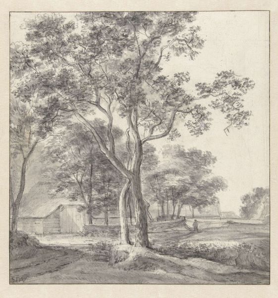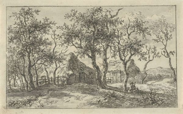Anthonie Waterloo created this etching, "Buildings along a forest path," sometime in the 17th century. What’s interesting here is the relationship between the natural world and the built environment. In the 17th century Dutch Republic, landscape art wasn't just about pretty scenery. It reflected the social and economic values of the time. This was a period of intense urbanization and economic expansion and this etching captures the tension between the idealized countryside and the realities of a rapidly changing society. Notice the buildings nestled within the forest, suggesting a harmonious coexistence. But also consider how the path cuts through the landscape, hinting at human intervention and control. Waterloo's choice of etching as a medium is also significant. Etchings were more accessible and affordable than paintings, making them popular among a growing middle class. To truly understand this work, we might turn to period maps, economic data, and social histories. By exploring such resources, we can appreciate how art is always shaped by its particular moment in time.