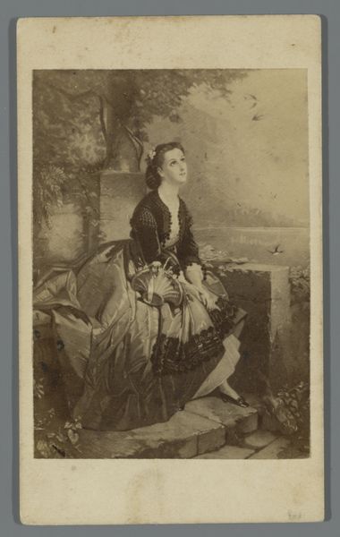 Editor: This is "Mrs. Marian Murray, Lady Stair," taken between 1843 and 1847 by Hill and Adamson. It’s an albumen print photograph. The woman’s expression is striking; there’s almost a defiance in her eyes, despite the very formal portrait setting. How do you read her stance, the way she occupies space in this image? Curator: Her stance certainly speaks volumes. This photograph comes from a period where photographic portraiture was largely reserved for the upper echelons of society. What's powerful here is considering what it meant for a woman, even one of Lady Stair's status, to have her image captured, to enter into a realm of visibility and potential agency. Consider how women were often represented passively in paintings. Editor: That’s interesting. It sounds like photography became a new arena for visibility? Curator: Precisely. And visibility, of course, is inherently tied to power and representation. The very act of choosing how to present oneself before the camera challenged traditional modes of representation. Who controls the narrative and the image becomes central. Also, in the context of Victorian Scotland, notions of propriety and gender roles were strictly defined, wouldn't you agree? Editor: Absolutely. What might this have meant for Lady Stair, participating in this new medium? Curator: Well, on one level, it's aligning herself with modernity and technology. But on another, she’s inserting herself into a visual discourse, contributing to and shaping a conversation about female identity. Think about the weight of her gown and shawl – are these markers of status or confinement? Or, perhaps, can they be both? Editor: That makes me consider the duality of representation, and how one image can reflect complex social realities. Thanks! Curator: It goes to show how much early photography allows us to discuss intersectionality. This medium holds space for status and constraint, representation and the subversion of power all in one frame.
