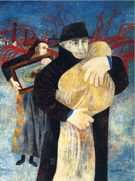 Alexander Roitburd made this compelling painting, The Dormant Tzadik, with oils and a distinctive approach to mark-making. Look at how he builds up the image from these loose, expressive strokes, almost like he’s sketching with paint. It gives the whole scene a kind of raw, immediate energy. Roitburd is so good at capturing the weight and feel of things. The thickness of the paint adds a tactile quality, making you want to reach out and touch it. Notice the way the light catches the surface, creating highlights and shadows that give the figures volume and presence. Take a look at the sleeping man’s hands, how they are crossed so deliberately across his body. It’s a gesture that speaks volumes about vulnerability and protection. The painting's earthy palette reminds me of Chaim Soutine's portraits, where the subjects seem to emerge from a swirl of emotion and pigment. Roitburd leaves us with questions rather than answers, and embraces the open-endedness of art.