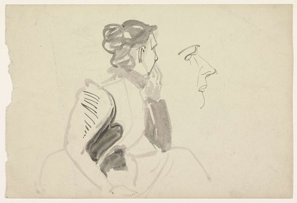 Curator: Here we have Barry Flanagan's portrait of David Sylvester. It's an etching, delicate and sparse, held in the Tate Collections. Editor: The initial impression is striking—a vulnerable depiction. It's as if Sylvester is captured in a moment of introspection. Curator: Sylvester was a very influential art critic, so Flanagan is depicting a man whose gaze held considerable power. Editor: Yes, but here, he seems so fragile, almost sketched into existence. The lines are tenuous, like he might fade away any second. Curator: The economy of line could be seen as reflective of Sylvester's own rigorous approach to art criticism, stripping away the unnecessary. Editor: That’s a thoughtful read. Still, the overall effect is incredibly intimate. I feel like I’m intruding on a private moment. Curator: Ultimately, Flanagan gives us a fascinating glimpse into the complex relationship between artist and critic, power and vulnerability. Editor: And it reminds us that even the most formidable figures have their quiet, contemplative moments.