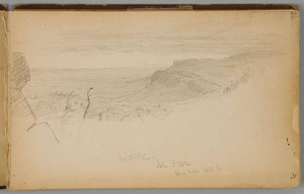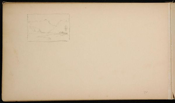 Curator: Sanford Robinson Gifford, of the Hudson River School, created this preliminary sketch, "Hudson River Valley; verso: Three Small Landscapes." It is part of a sketchbook. Editor: It looks like a ghost of a landscape. There is something ethereally serene about these wispy lines and empty space. Curator: Indeed. It's quite interesting to consider the material process here: the cheap paper, the quickness of the pencil strokes. It speaks to the industrialization of art supplies and the artist's own efficient labor. Editor: Yet those faint lines still evoke the grandeur of the Hudson, a symbolic landscape pregnant with notions of American expansion and transcendentalism. The way the mountains fade into the distance carries a weight. Curator: Absolutely, but the unpretentious nature of the sketch itself is important. It’s not about finished product but about process, about the artist working out the composition, almost as if it were notes taken during a walk. Editor: I see it as a meditation before creation. A symbolic mapping of his emotional response to the land. Curator: Perhaps. For me it really highlights the everyday labor that went into crafting those grand, sweeping vistas. Editor: It is interesting how the light and shadow play here and how Gifford captured the essence of the Hudson River. It is more than a sketch; it is the symbol of what is yet to come. Curator: Precisely. A testament to the intersection of industrial production and artistic vision. Editor: A fascinating reminder of how symbols can emerge from even the simplest of lines.