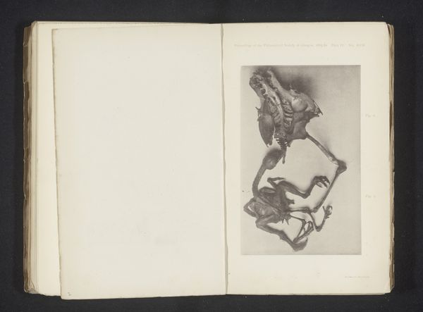 Editor: So, here we have "Twintig aangezichten van botten en het schedel van een konijn," or "Twenty Views of Bones and the Skull of a Rabbit," created before 1874 by Bernhard von Gudden. It's a print, almost like a page torn from an old textbook or personal sketchbook. I'm struck by the stark contrast of the bones against the dark background and how meticulously each piece is rendered. What do you see in this piece beyond its apparent anatomical nature? Curator: What immediately strikes me is the work’s engagement with systems of knowledge and power. Think about it – who gets to dissect, study, and categorize? During the 19th century, this act of naming and classifying was deeply intertwined with colonialism and the assertion of Western dominance. The rabbit, seemingly innocuous, becomes an object subjected to scientific scrutiny. Does that raise any questions for you? Editor: Absolutely. The objective "scientific" gaze isn't so objective after all. The very act of isolating these bones speaks to a specific, perhaps biased, way of seeing the world. So, how might that colonial context influence the way we view this image today? Curator: We must acknowledge how images like these participated in creating a hierarchy. On one hand, we can interpret the detailed rendering of each bone as demonstrating the value of science. Yet, it also implicitly asserts power over the natural world, turning living beings into objects of study. It invites us to question whose knowledge is valued and whose perspectives are marginalized in such depictions. Does it remind you of other scientific studies of the period? Editor: Yes, thinking about phrenology and the pseudoscience used to justify racial hierarchies... I see the connection much more clearly now. This wasn't just about bones; it was about solidifying a worldview. I now realize this image asks far more questions than it answers! Curator: Precisely. It's a potent reminder that art, even scientific illustration, exists within broader social and political currents. Hopefully, this exercise makes us all the more critical!