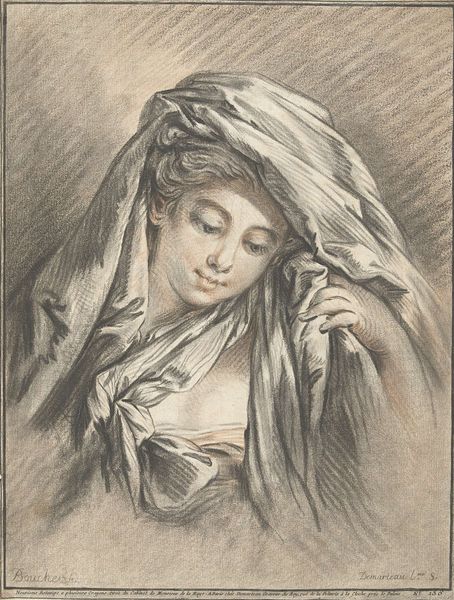 Curator: Ludwig Gottlieb Portman created this piece, titled “Gezicht,” sometime between 1787 and 1828. It's currently held here at the Rijksmuseum. What strikes you initially about it? Editor: I'm getting a strong sense of intimacy, you know? The delicate pencil lines, the way she’s adjusting her headscarf. It feels like a stolen moment. Almost as if she thinks she's unobserved. Curator: Precisely! That's a quality often associated with Romanticism, which this artwork leans into. We're drawn into this very private, almost secretive ritual of grooming. The mirror, of course, is central here—a potent symbol of self-reflection and perhaps vanity, but also of societal expectations placed on women. Editor: The headscarf itself adds a layer, doesn't it? Is it purely practical or is there something more? It feels almost theatrical. Is she veiled or unveiled? Curator: I'm inclined to think that its practical origins have perhaps taken on an element of exoticism. We need to recall Europe's fascination with Ottoman and North African cultures during this period. What's interesting to me, beyond this nod to another culture, is that her partially obscured face asks us to look closer. What is hidden becomes fascinating, right? Editor: Yes, the mystery invites our gaze, certainly. Also the choice to capture the subject in pencil sketch is such a bold choice. It highlights vulnerability, a study of both self and culture, rendered in the most fragile way. Curator: Very true! It highlights how beauty ideals of the day permeated even the most private moments. I wonder what her expectations might have been? Portman really prompts such questions, and makes one ask oneself what are some of the expectations placed on us? Editor: It’s more than just the pencil technique too; the Romantic undertones give it this feeling, a push-pull between external expectations and an inner, maybe conflicted self-image. It resonates. It also hints to me at a story untold, an unfolding drama of identity. Curator: And that, in essence, is why portraiture, and art in general, continues to move us! Thank you for adding some more layers for our visitors today! Editor: Anytime. It's always refreshing to view the classics under a new light!